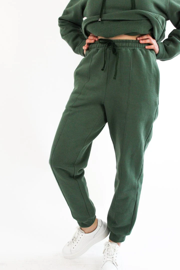 Buy the Luna Joggers sewing pattern from Bella Loves Patterns. Luna is a high-waisted pair of joggers with a straight leg. The pattern features in-seam side pockets and an elastic waistband with a drawstring. Choose between a stitched front crease or a plain front, and between a ribbed cuff hem or a plain finish hem.