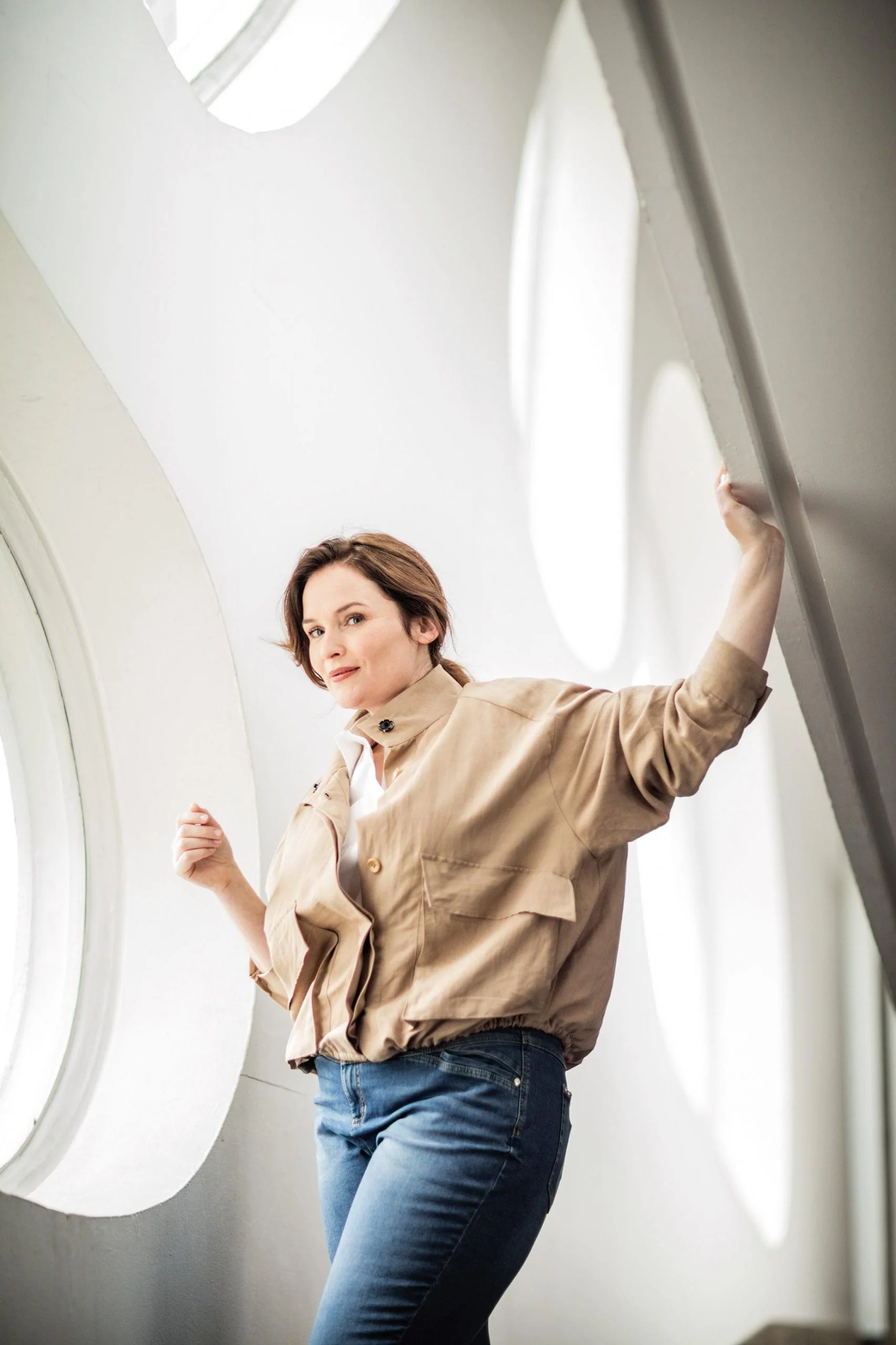 Buy the Avril Jacket sewing pattern from Fibre Mood. This cropped, casual jacket has attitude! Avril features a standing collar, hidden button placket, unique sleeves and cuffs. The gusseted patch pockets have a button flap (or leave the buttons off). Want more volume in the jacket? There's a drawstring waist for that. Want it longer? It looks great that way too!
