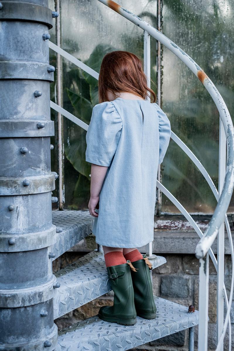 Buy the Child/Teen Iris Dress sewing pattern from Fibre Mood. Seriously, what a darling! Iris doesn’t make a fuss with ruffles or pleats. This dress stays true to its simple form with particularly charming statement puffed sleeves and a hook-and-eye at the back. Better yet, Iris also makes a super cute top. All you have to do is shorten the front and back to the recommended or preferred length. Insider tip: Iris adores twinning with Doris.