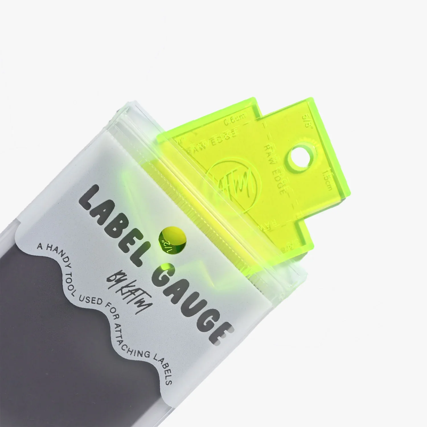 Buy the Label Gauge from Kylie & The Machine. This acrylic gauge will help you to position your label perfectly, so the desired amount is visible once the seam is sewn. The gauge includes the four most common seam allowances to make things super easy. Simply choose the tab that corresponds to your pattern's seam allowance and away you go!