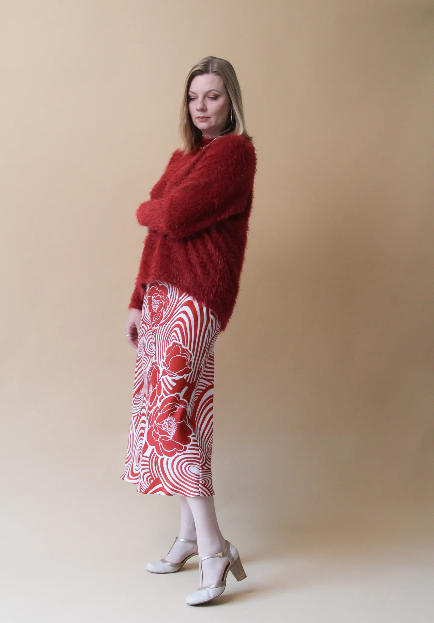 Buy the Sasha Skirt sewing pattern from Lenaline Patterns. This beautiful, slightly flared skirt is neither too long nor too short. The elastic at the waist and bias cut will give you complete freedom of movement.
